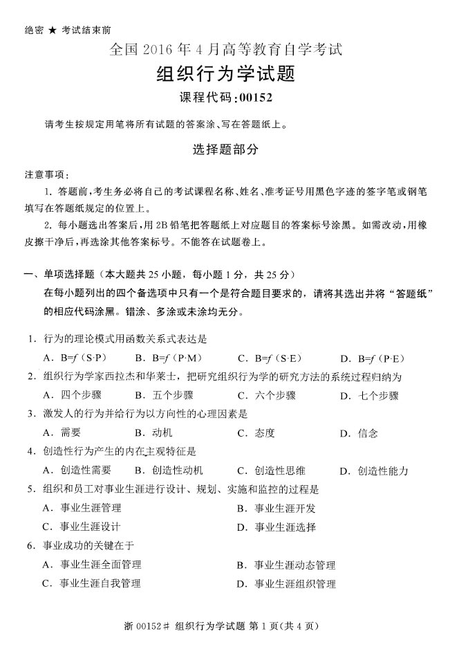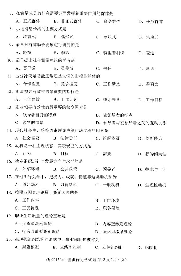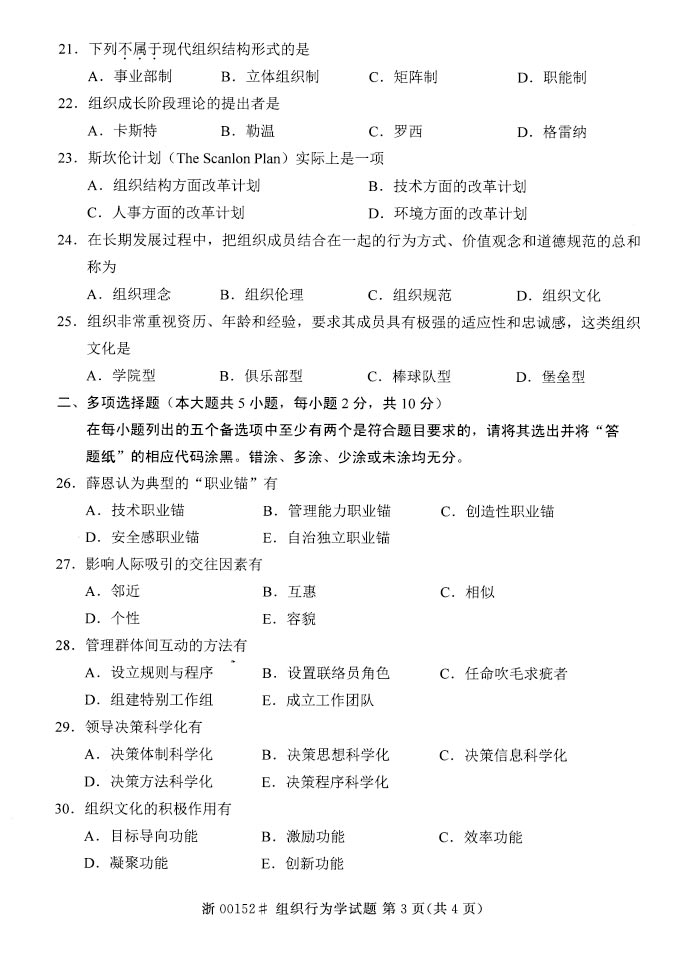 2015年4月自考《管理学原理》考试真题07-17